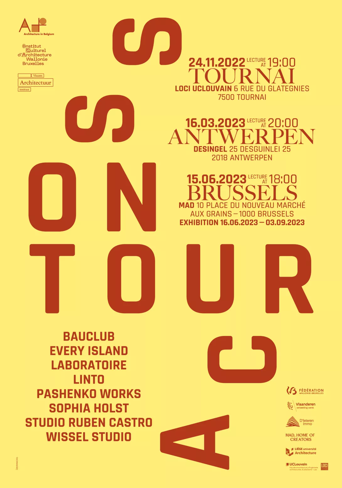 Across on Tour is an initiative of A+ Architecture in Belgium, realized in co-production with MAD Brussels, the Institut Culturel d'Architecture Wallonie Bruxelles (ICA) and the Vlaams Architectuurinstituut (VAi).
